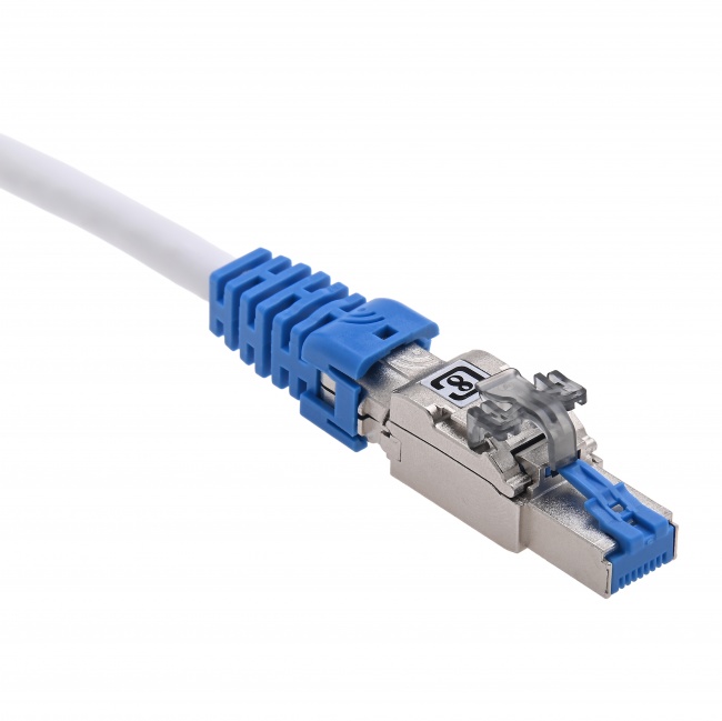 The Platinum Tools Cat8 connector offer an easier way to terminate. These connectors utilize a tool less design to make terminations on oversized cables a breeze. Simply strip your cable jacket, split the pairs, align into the correct slots, trim excess and snap closed.