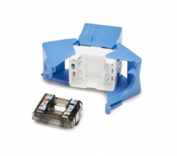 Made to fit industry standard wall plates and patch panels, our new Keystone Cat6A Jack has a tooless design that reduces tool cost, since no punchdown tool is required. The color coded wire guide ensures pairs stay in the proper order for fast, easy terminations. This keystone jack is also designed to be resuable, and comes in multiple colors, so it can be used to replace old, worn out jacks or be integrated into newer projects with little difficulty.