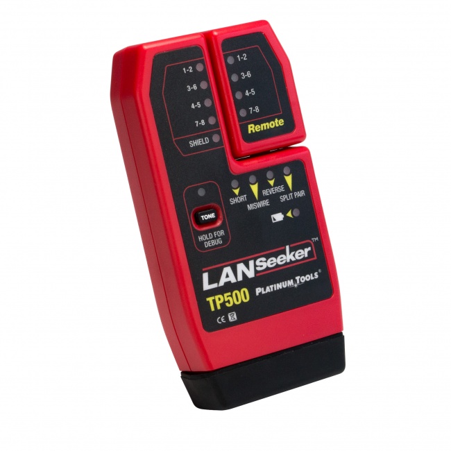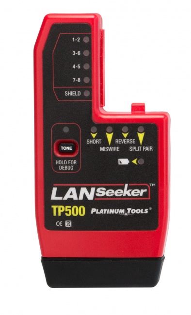 The LANSeeker™ is a fast, rugged cable tester and tone generator in one unit. It displays cable test results using LED indicators on the main and remote unit. An easy-to-use professional grade tool, the LANSeeker is a must have for residential and commercial cable installers. When the unit senses a connection between the main and remote unit, the battery-saving auto-on feature initiates test results within 2 seconds. The tester automatically powers off within 5 seconds of the cable being disconnected. LANSeeker tests for shorts, opens, miswires, reversals, and split pairs and can display connection and fault information on a pair-by-pair basis. It also generates audio tones for use with tone tracers on all pairs.